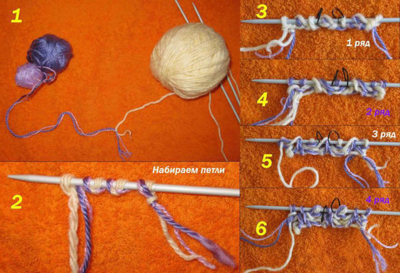 Първо трябва да знаете как да добавяте и сваляте иглите за плетене, а след това да опитате да използвате различни прежди.