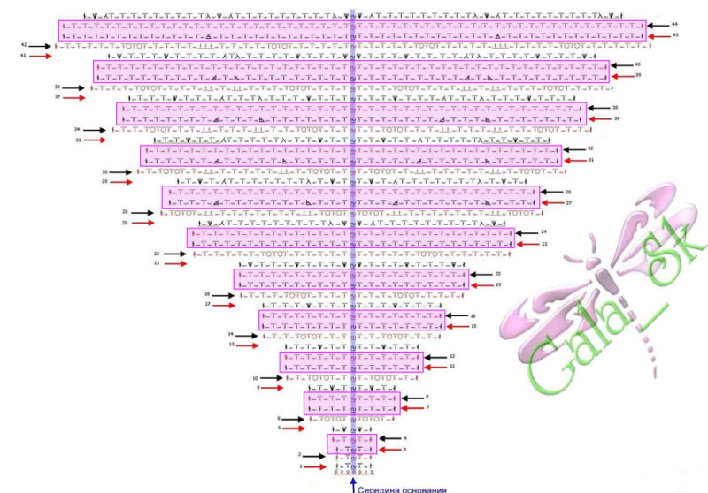 - Когато достигнете върха на триъгълника, започнете да добавяте бримки от същата страна. Обърнете се към диаграмите, за да ви помогнат да създадете своя модел.