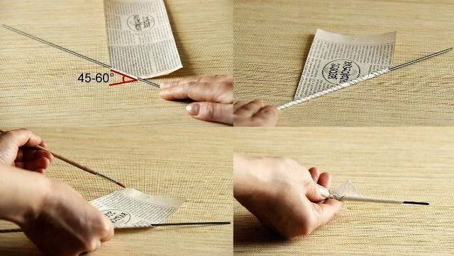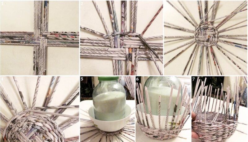 Методът се състои в навиване на вестникарски тръби, след което се залепват една за друга в редове.