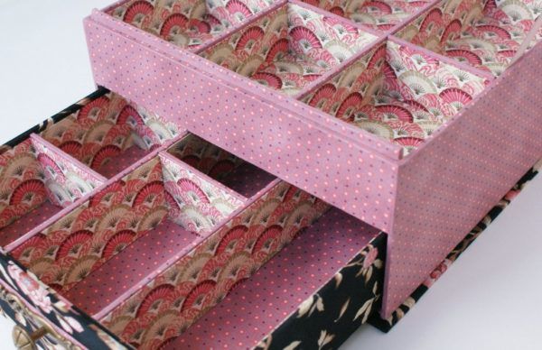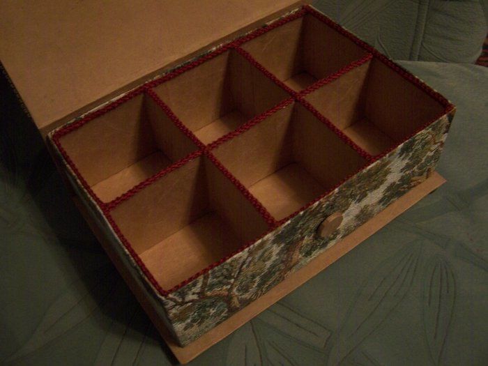Капакът се монтира като подвижна част, като се уверите, че сте използвали хребети, за да закрепите конструкцията. Вътрешната повърхност може да бъде оставена непокътната или дъното и стените могат да бъдат облицовани със ситни, кадифени или други тъкани.