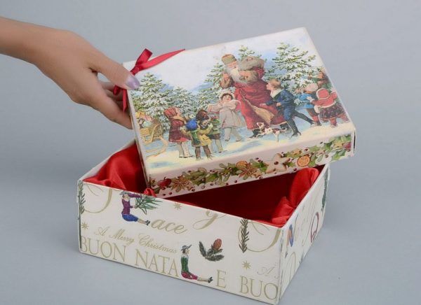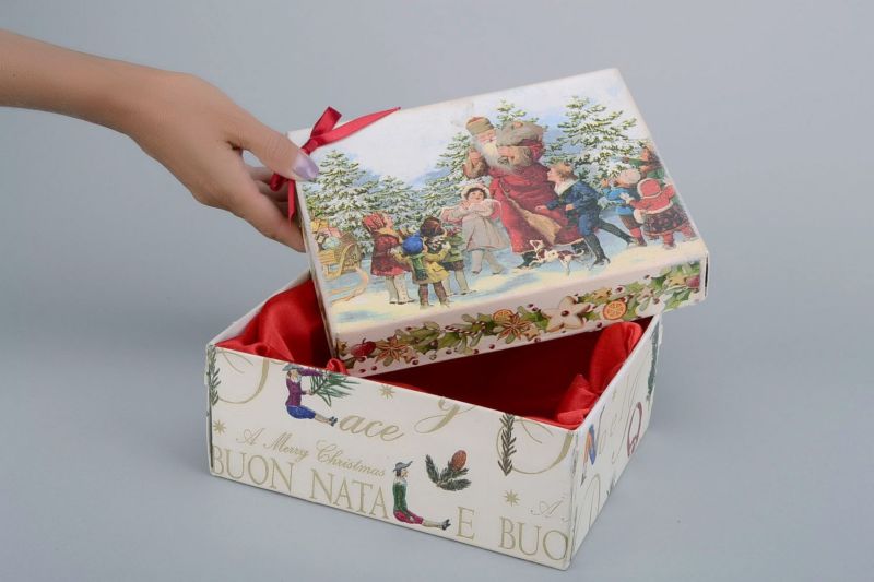 За да направите кутия, можете да използвате изхвърлена картонена кутия или да сглобите нов модел от тежка хартия. Ако се използва първият метод, последващата декорация е важен фактор. За втория вариант е необходимо да подготвите ножици, лепило и бои за декоративно рисуване.