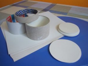 - Изрежете парче с форма на кръг с диаметър, равен на диаметъра на бъдещия аксесоар. За сглобяване на дъното ще е необходимо още едно парче със същия размер.