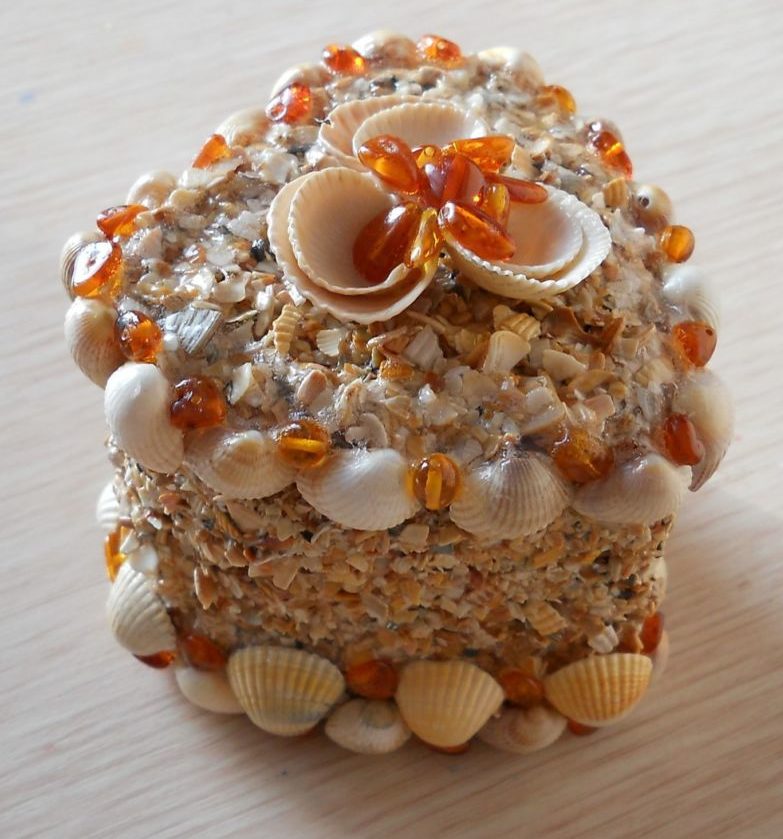 Мидите и речните черупки са чудесни за създаване на личен сандък. Полученият плавателен съд придобива морски характер. Можете да използвате обикновени кутии като здрава основа или да изберете особено силно лепило за сглобяването им.