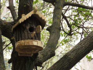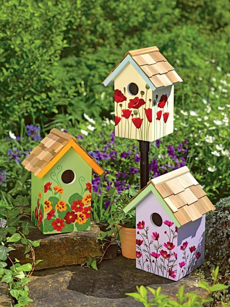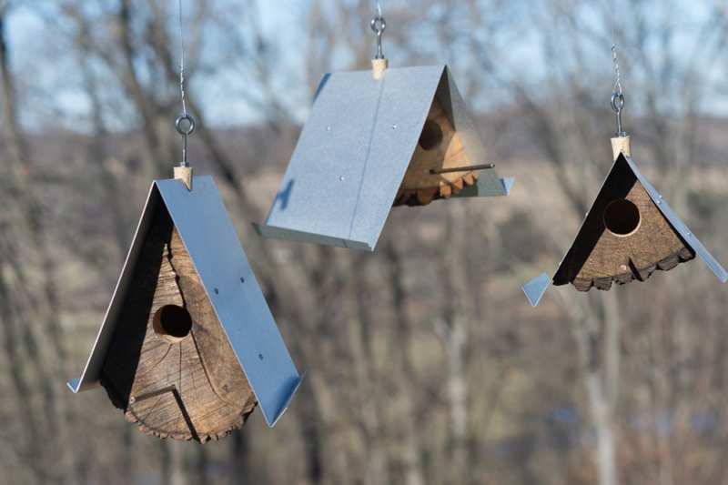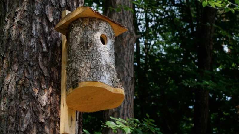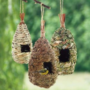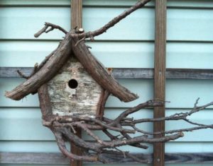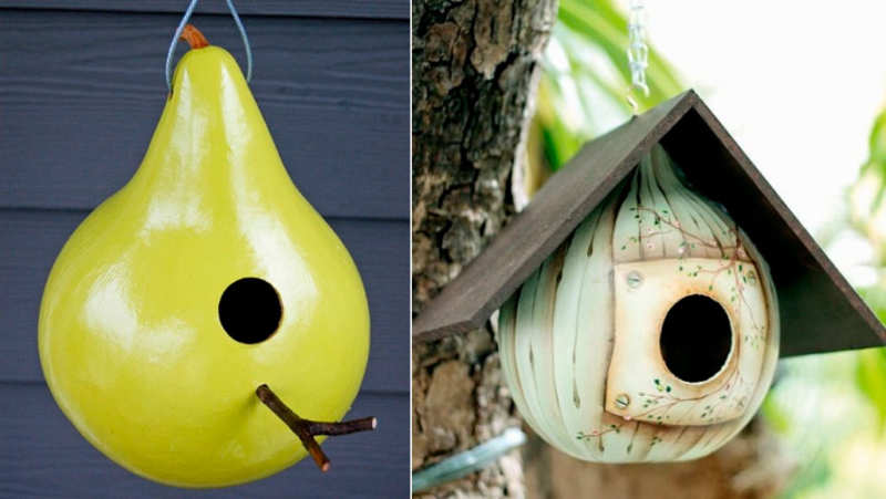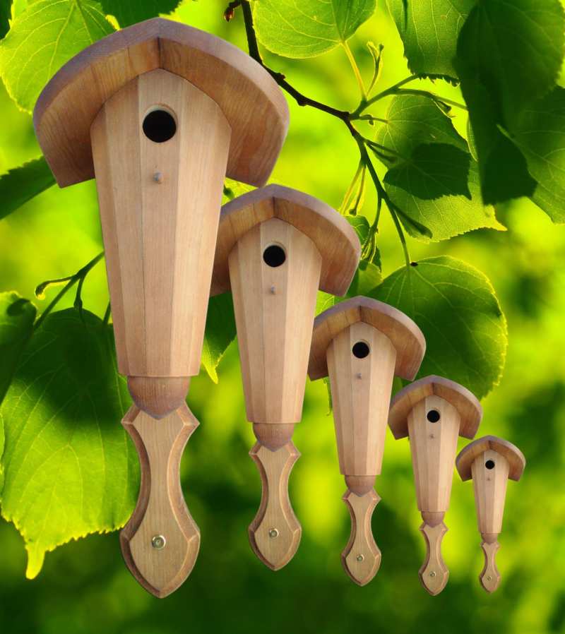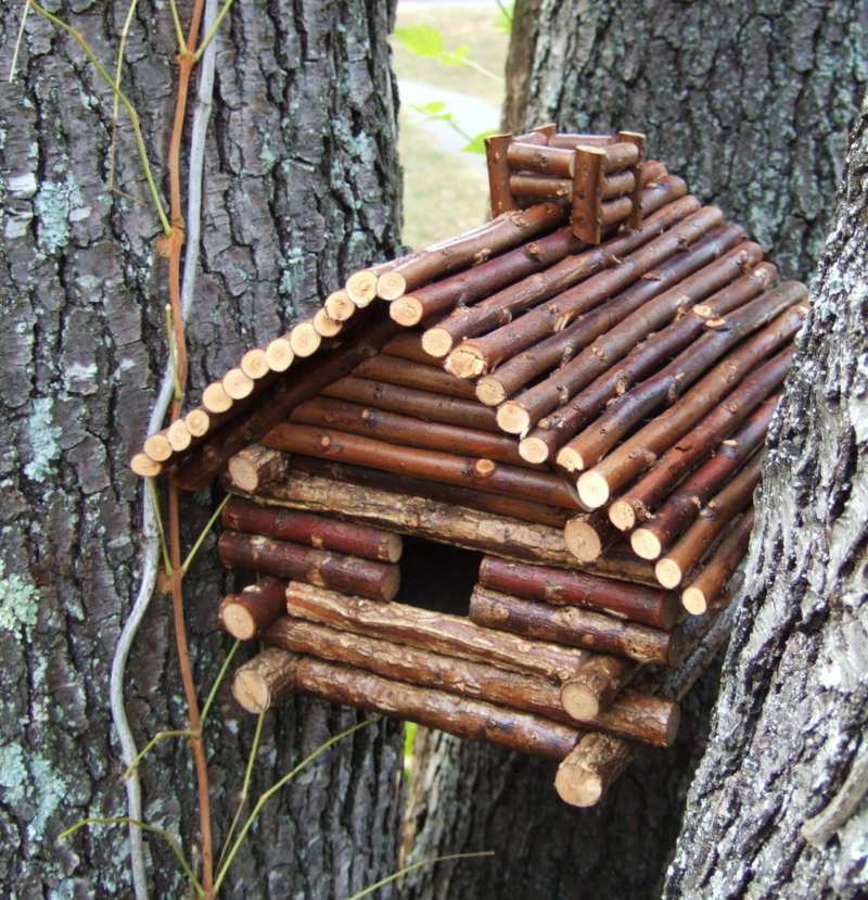 Освен от дъски, къщичките за птици могат да бъдат изработени и от тикви, винени тапи, изплетени от лозови пръчки или издълбани от стари трупи.