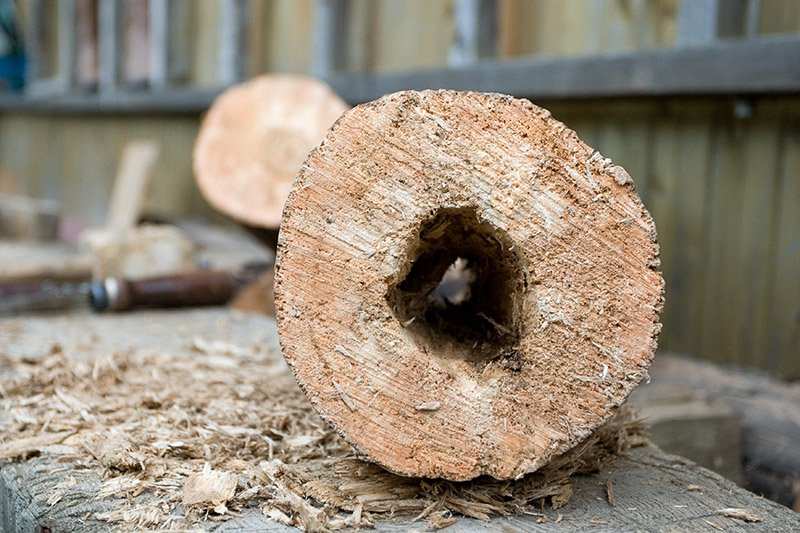- Издълбайте средата на дънера по подходящ за вас начин, като оставите дебелина на стената от 2 до 3 сантиметра.