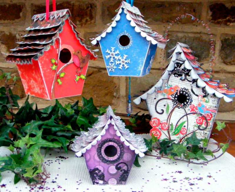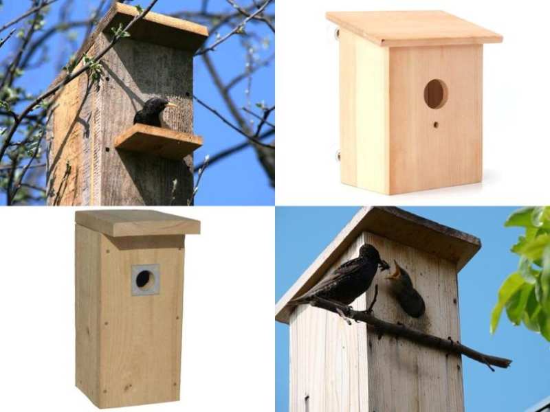 Къщичката за птици може да бъде изработена в различни форми от дървени дъски: