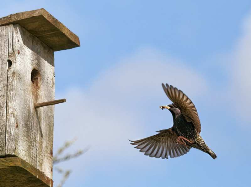- Къщичката за птици трябва да се окачи на височина най-малко 3 метра.