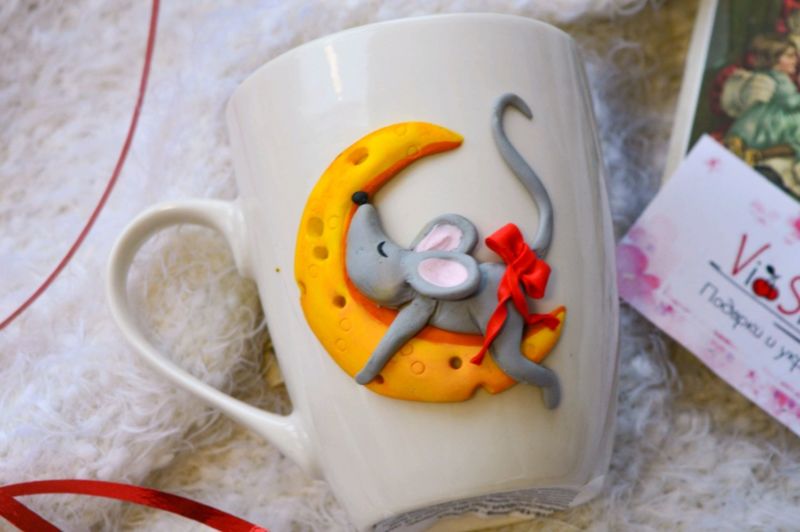Керамиката е много лесна за отпечатване с различни афоризми и анекдоти. Ако дарителят познава рожденика, можете да разнообразите нещата с чаша или чиния с термичен ефект. Когато в нея се налее гореща напитка, по стените на чашата се появява забавна рисунка.