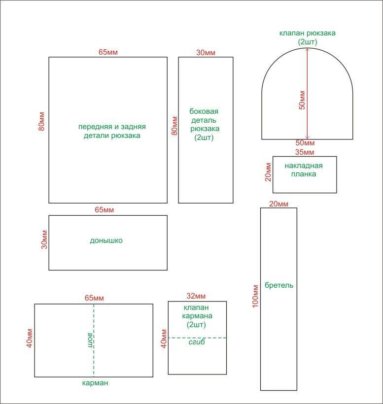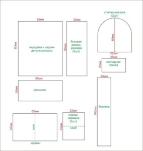 Шиенето на раницата не е сложно, трудности могат да възникнат с пришиването на ципа. Дръжките също са отличителна черта. Те представляват малка примка под формата на държач и ремъци.
