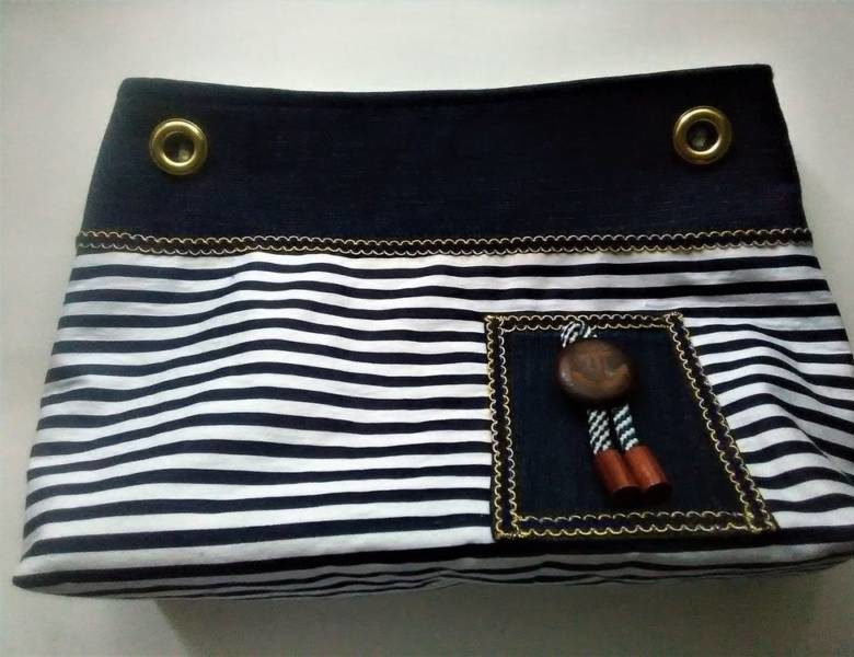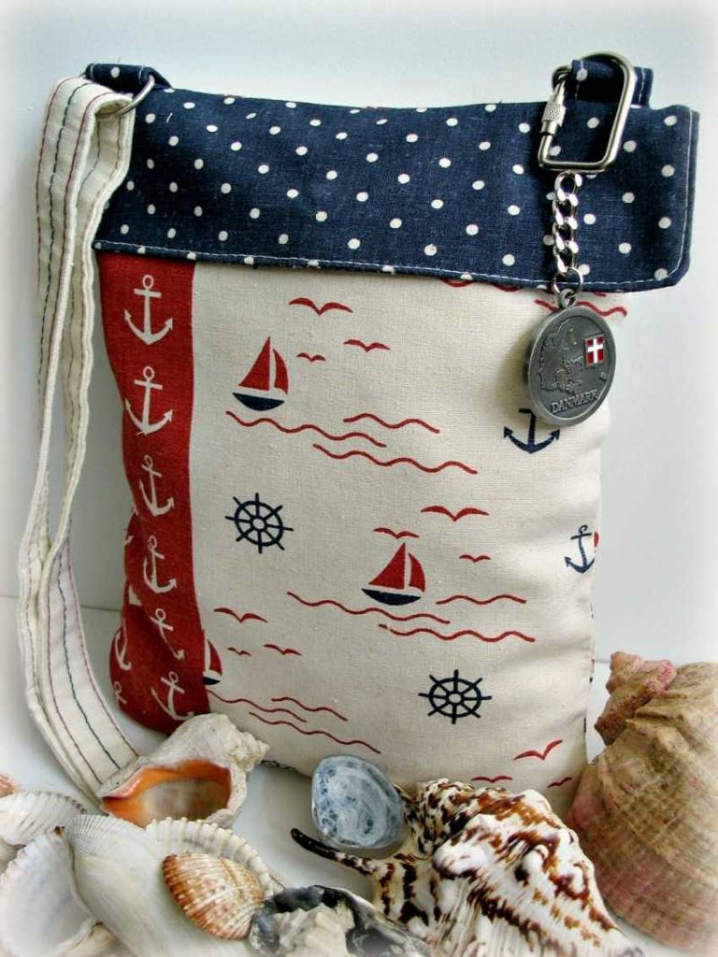 Допустимо е използването на магнитен бутон. Чантата може да бъде украсена и с апликация на котва, висулки с камъни и мидички. Чантата може да бъде украсена и с апликация на котва, висулки с камъни и раковини.