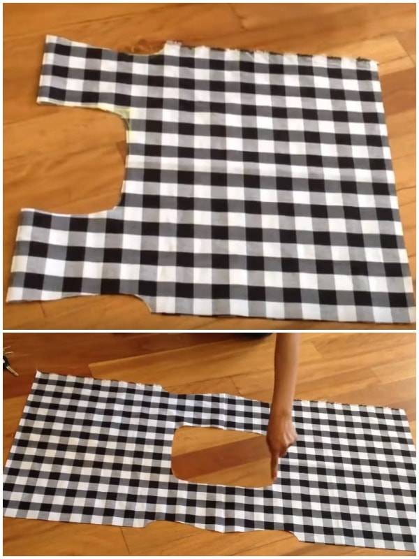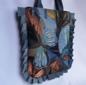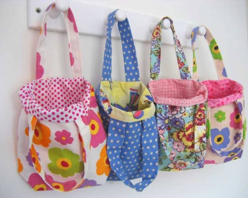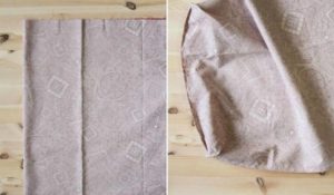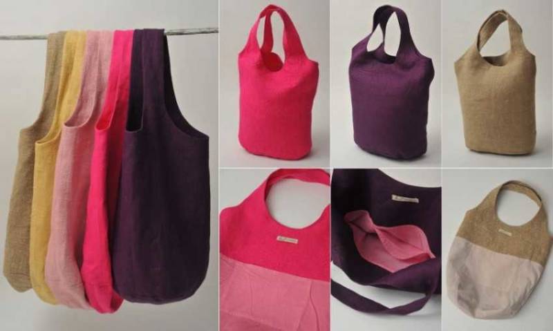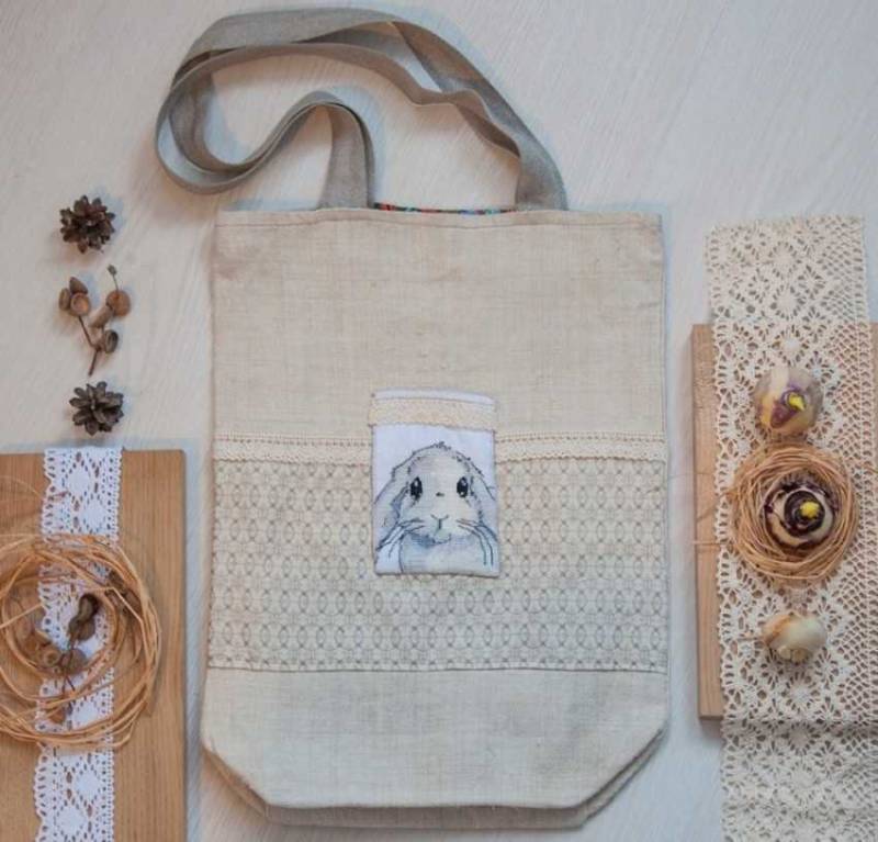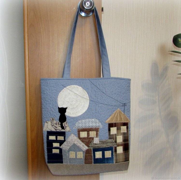 Изработката е подобна на тази на чанта за тениска. Продуктът може да има прави или заоблени контури. Можете да слагате гънки, да правите дръжки с всякаква дължина и формат.
