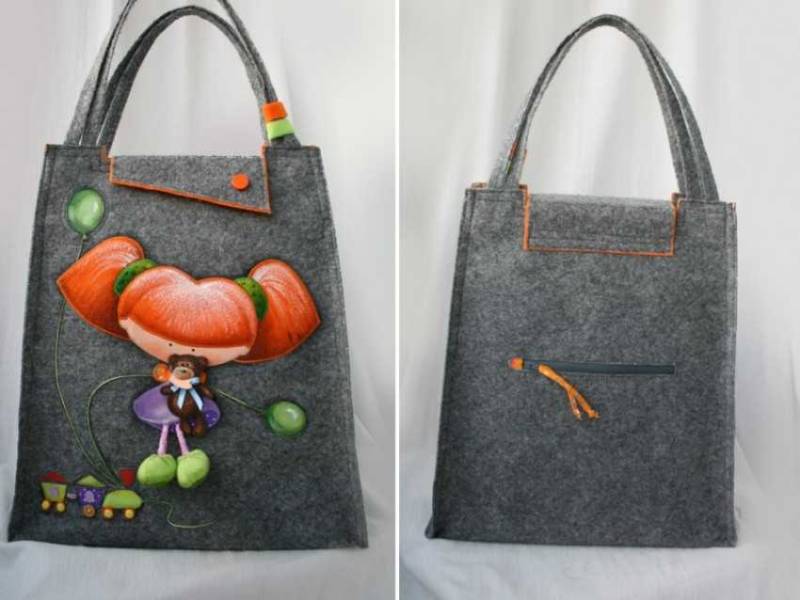 Децата обичат ярки, нескучни продукти. Те често не искат да използват обикновени чанти. Променете лесно ситуацията, като направите необичаен вариант. Добър пример за това е чанта с външен дизайн под формата на апликация. Често правят образи на различни животни, любими герои. Като начало ушийте проста чанта в подходящ формат.