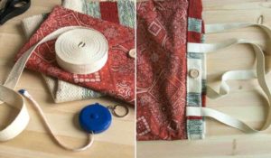 Лесна за изработване чанта в японски стил. Това е обикновена чанта с необичайни дръжки. Единият е по-къс от другия. Долната каишка ще служи за закопчалка.