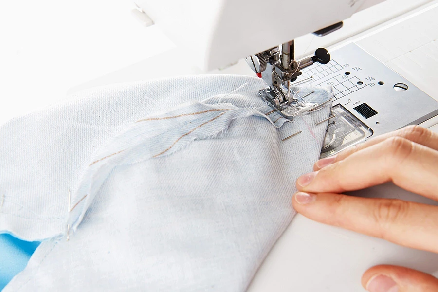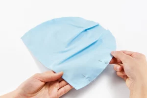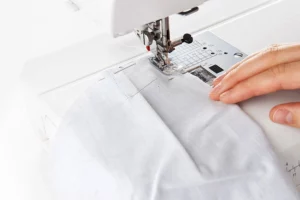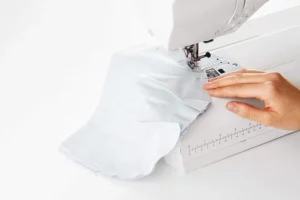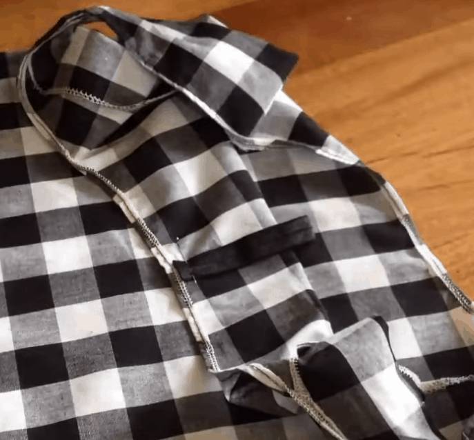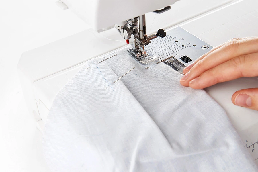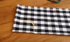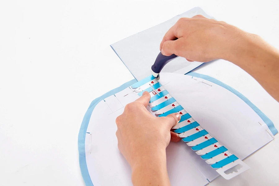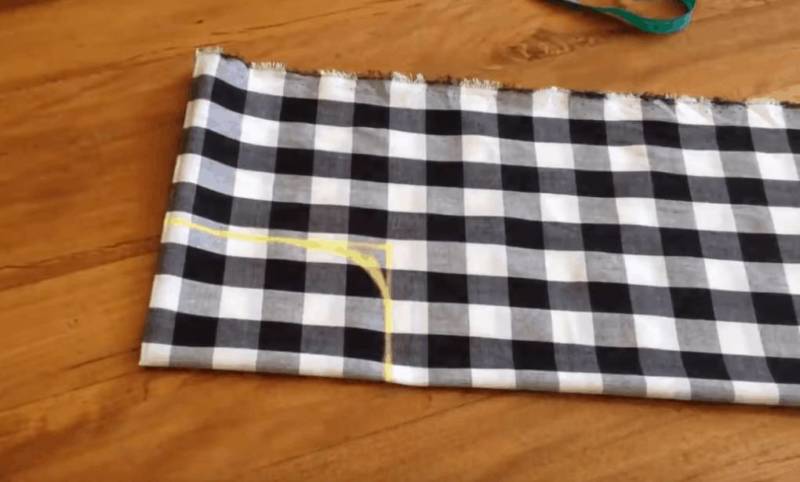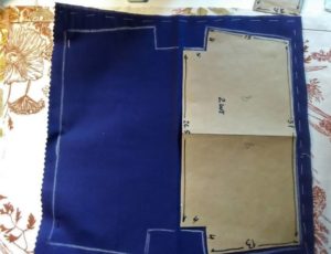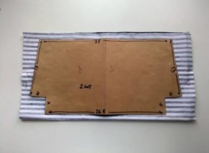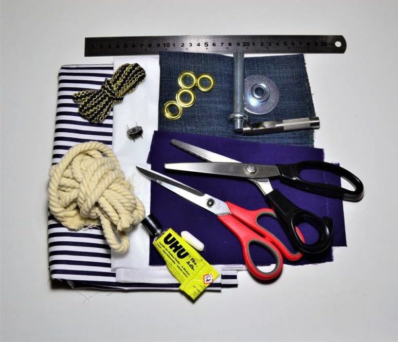 За шиене вземете плътен плат в плътни цветове и райета. Обикновено това са бял едноцветен вариант и дублет със сини ивици. Върху тъканта се пренася съответстващ модел.