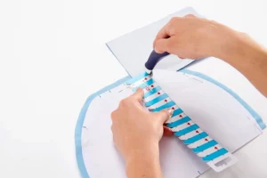 Ако не можете да намерите готов модел, е приемливо да използвате пластмасова торбичка, подходяща по размер. Разрежете го наполовина отстрани и просто очертайте контурите върху плата.