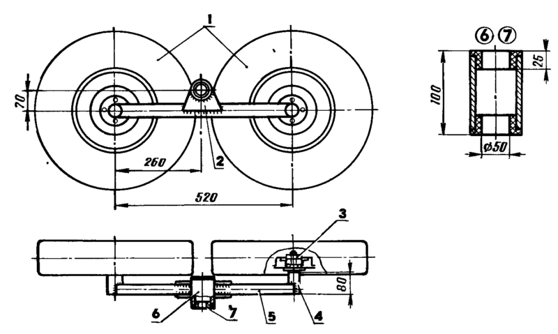 - Вземете краката на леглото и направете мост с две колела, оси и главини.