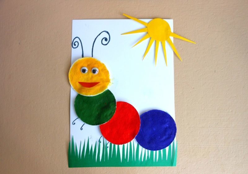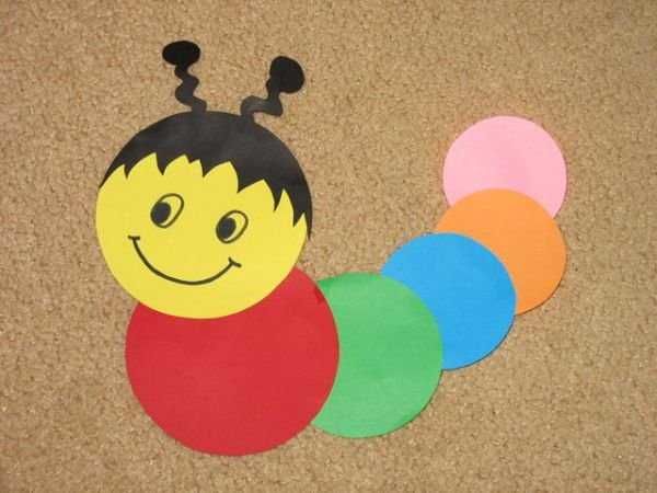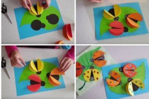 Децата обичат да изработват познати предмети върху шаблони. На 3-4-годишна възраст те вече познават много насекоми и са в състояние да променят цвета, ако става въпрос за апликация от хартия, или да вземат капаче с подходящ модел.