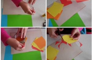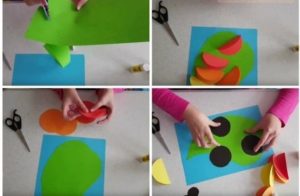 При овладяването на различните видове апликации е важно да покажете на детето крайния резултат на снимка на готовия шаблон, като му дадете свобода да твори.