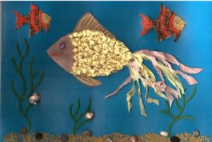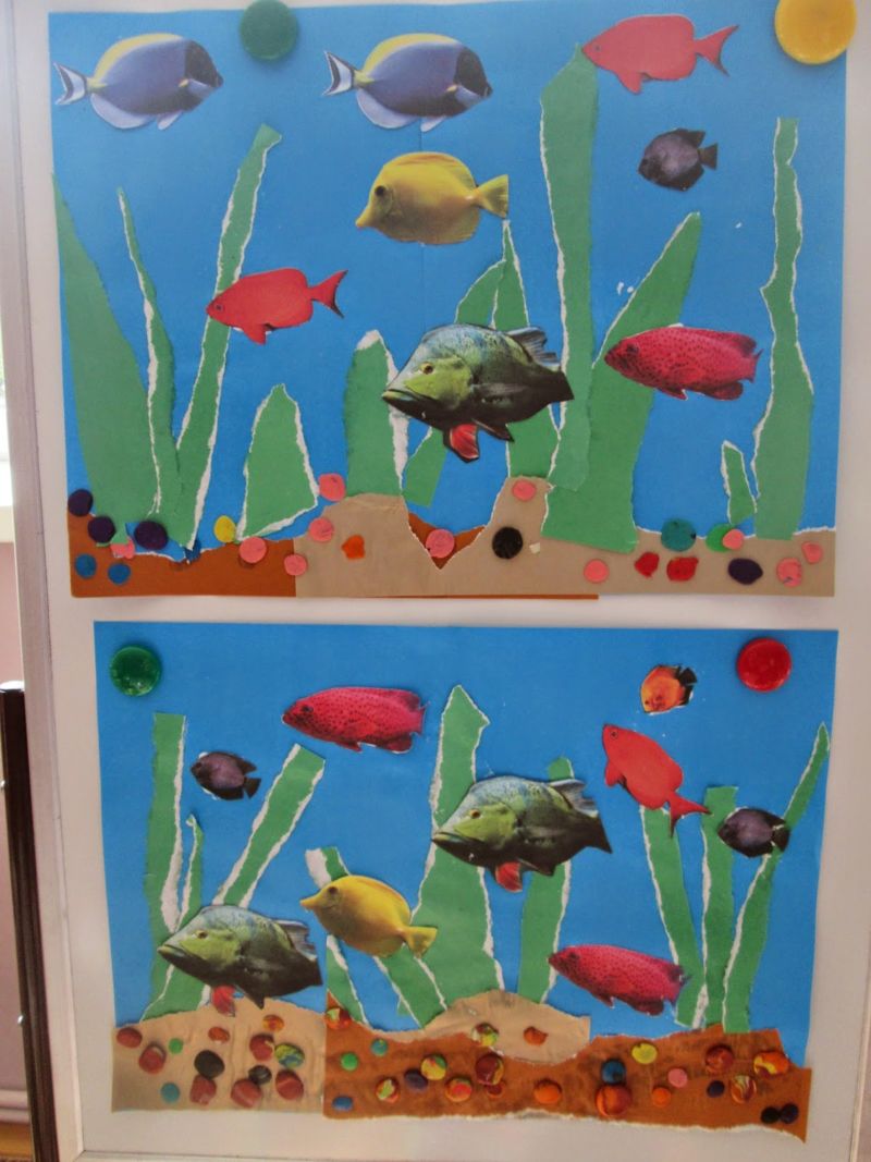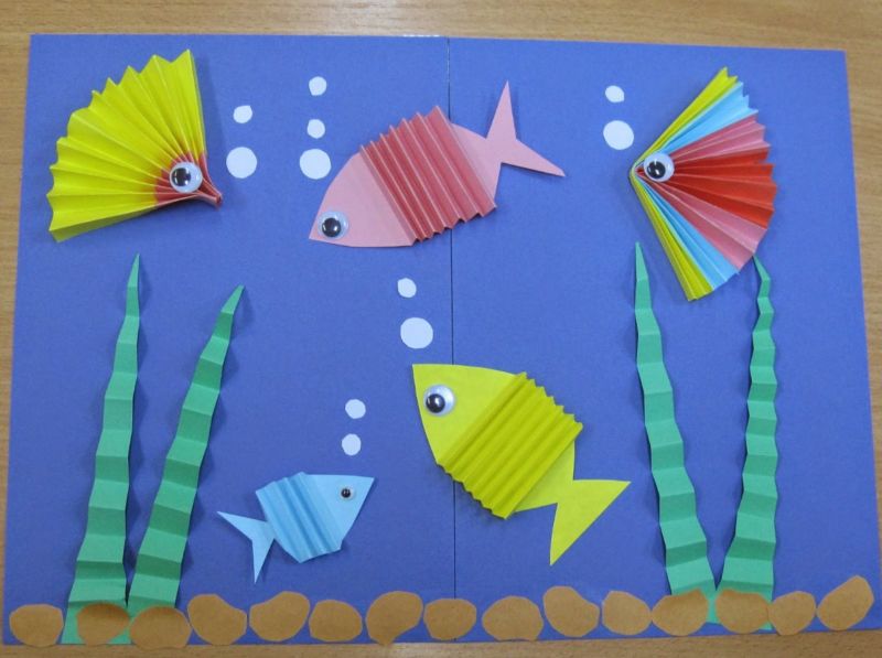 Добър начин да направите това е да предложите групова дейност. Например нека група деца да създадат апликация на голям аквариум с помощта на шаблон за рибки. Накарайте ги да го допълнят с естествени материали, както намерят за добре: