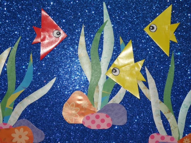 Шаблони за всеки вкус - Златен ключ, Подводна брадва, В очите на Немо или Малката русалка. Предложете на детето да си представи цялостна картина. Корпусът може да бъде изработен от пъстра материя, дори ако основата на апликацията е от цветен картон или хартия.