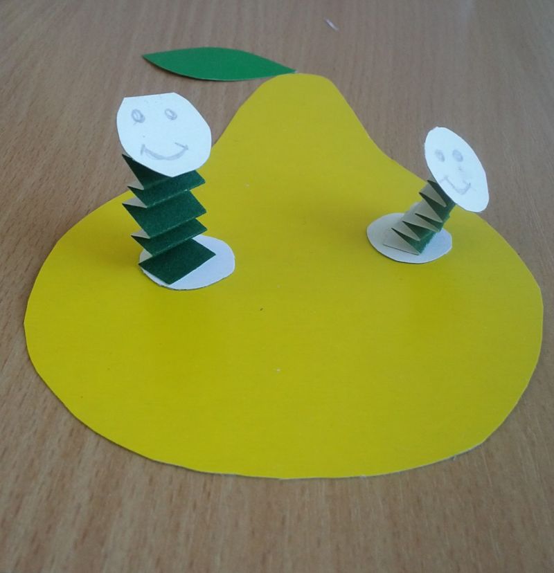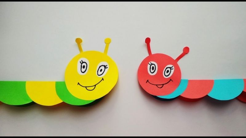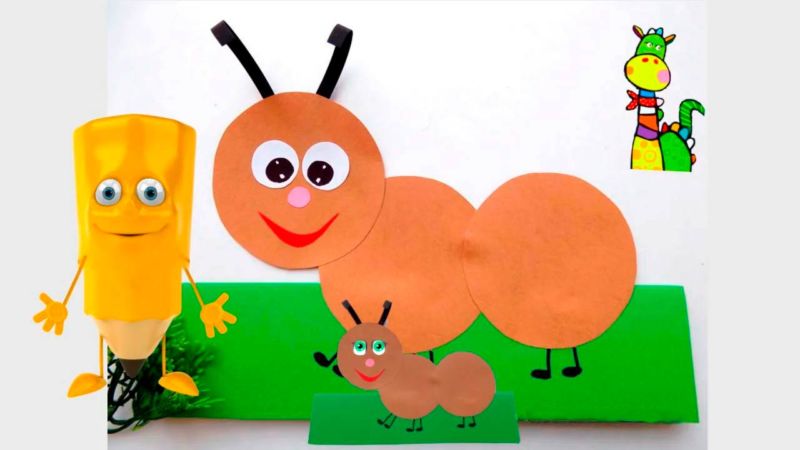 Малките деца разпознават безпогрешно пеперуди и гъсеници, буболечки и паяци. Тези предмети са лесни за изработване по шаблон, като се работи с ножица върху цветна хартия.