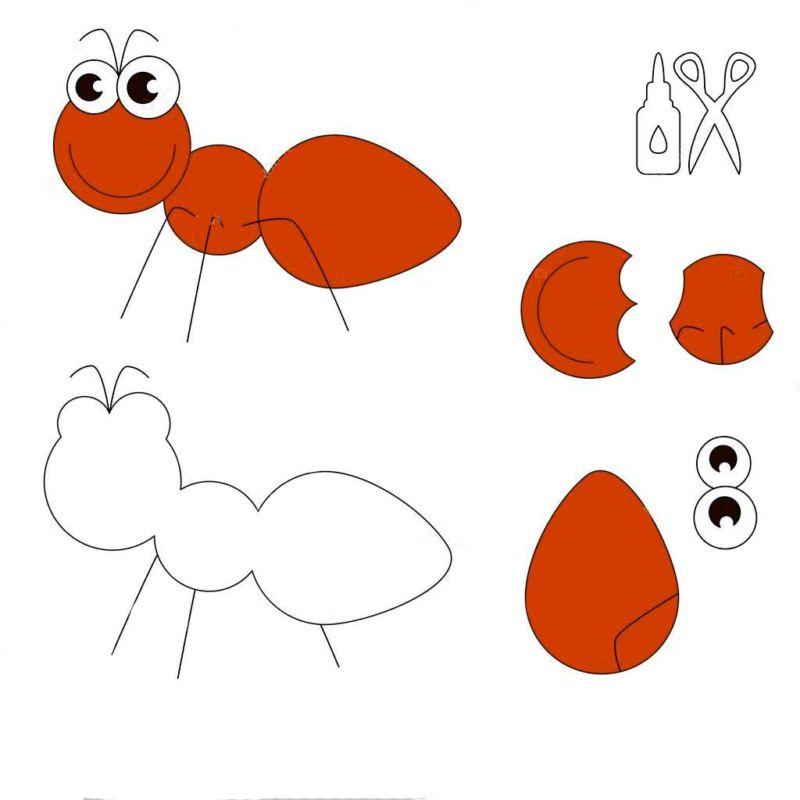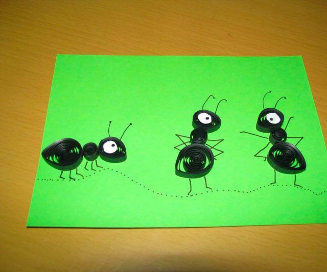 Изрязването на апликации от готов контур е най-лесното нещо, което децата могат да направят. Малките деца на 2-3 години обаче може да не знаят какво представляват мравките.