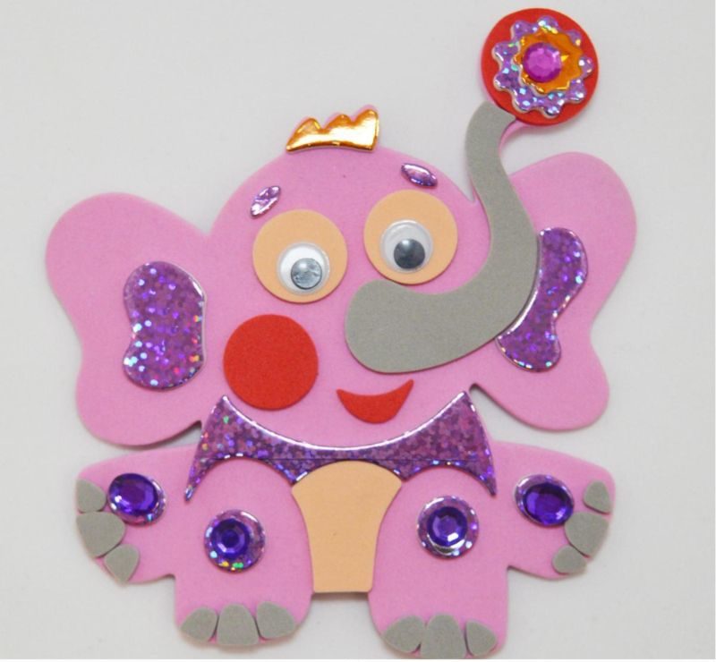 Обърнете внимание! Лесно е да направите детско произведение със собствените си ръце - шаблонът за слон е съвсем прост, но е важно да се осигури пропорционалност на краката, главата и торса. Ушите и очите се нанасят с PVA.