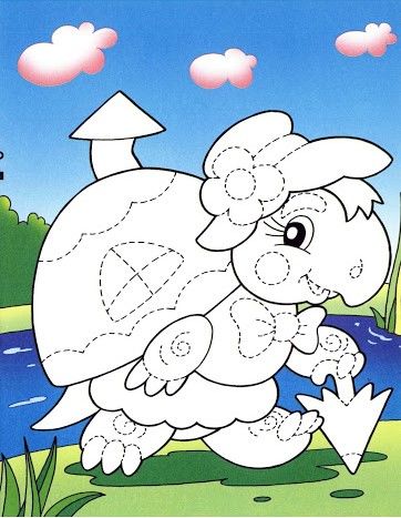 Моделите с животни се различават по сложност, но има и универсални обекти, като например картина на риба. Детето може да очертае контурите на хартия и да променя опашката, очите и перките.