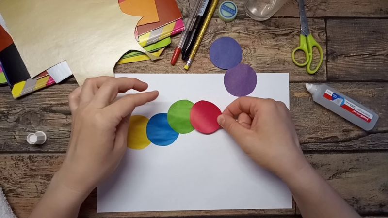 Важно: Дете на 3-4 години може лесно да следва модела. Като възпитавате умения за работа с цветна хартия, предлагайте безопасни инструменти - ножица с тъп ръб и лепило.