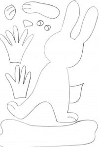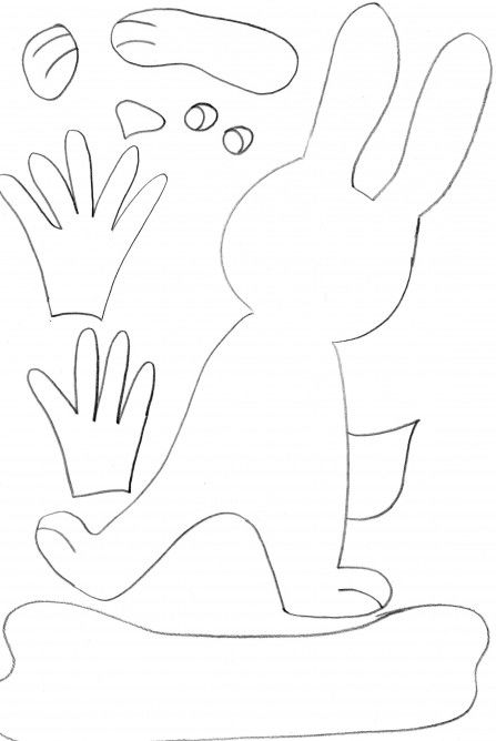 Обикновеният шаблон на заек или котка за апликация дава представа за композицията и пропорционалността, за съразмерността на тялото и главата.