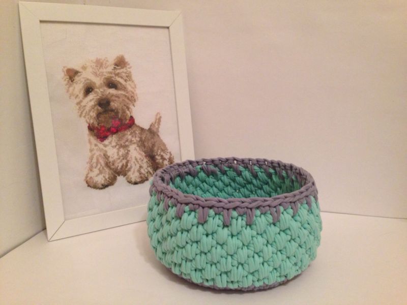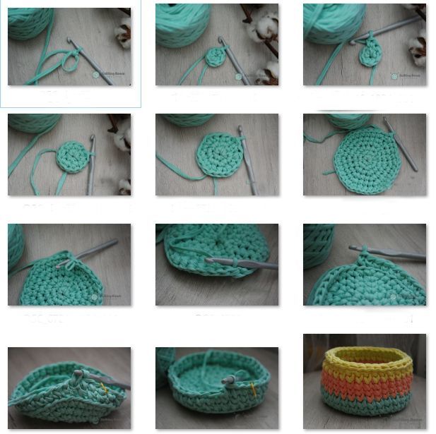 - Започнете да плетете дъното на кошницата. След това отдолу изплетете стените в кръг до необходимата височина.