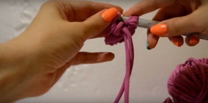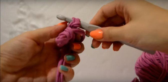 Работата започва с избора на модел, избора на прежда. Преждата с ширина 7-9 мм е подходяща за кошници, чанти, играчки, сувенири; 9-12 мм - за платове, килими, пелерини.