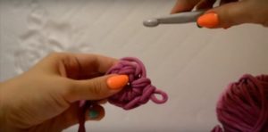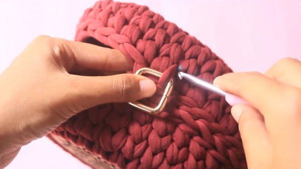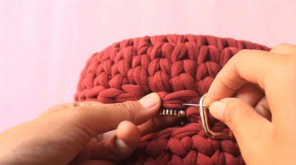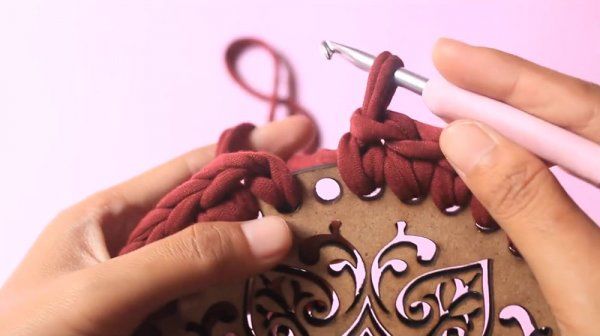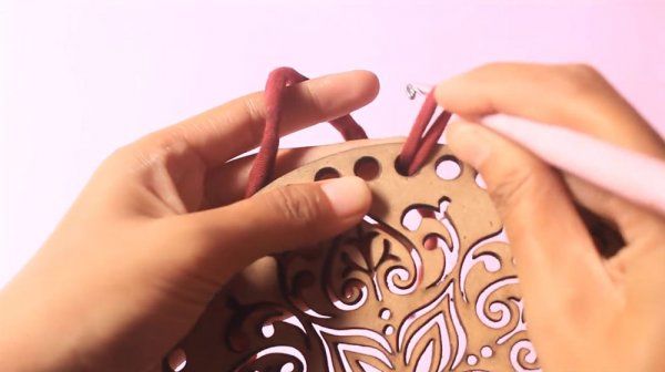 За оформяне на входния отвор е необходим обръч за бродерия. Започнете да плетете на една кука кръглата къща, като завържете обръча.