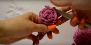 За допълнителен обем се използват много плетени ленти. Украсата може да се допълни с цветя от прежда в различен цвят, панделки.