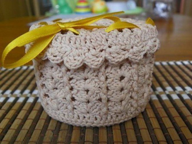 Кутиите се плетат подобно на кошници. Подгответе плетена прежда, плетене на една кука, основа за дъното и капака. Започнете с плетене на долната част. След това преминете към стените.