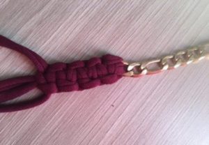Отрязвайте конеца и го подпъхвайте под примките, за да придадете на ръба равномерен вид. Гривната може да бъде украсена с мъниста, цветни копчета, бродирани цветя, висулки.