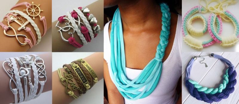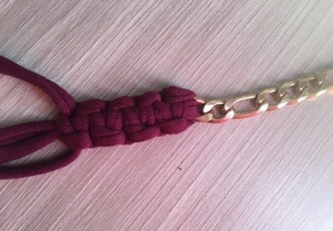 Красиви и много модерни гривни могат да бъдат изплетени от плетена прежда. За целта ще ви трябват парчета от плетена лента и кука за плетене на една кука. Съберете верига от въздушни примки и я свържете в пръстен. След това изплетете кръг на необходимата височина. Получете шарка на ивици.