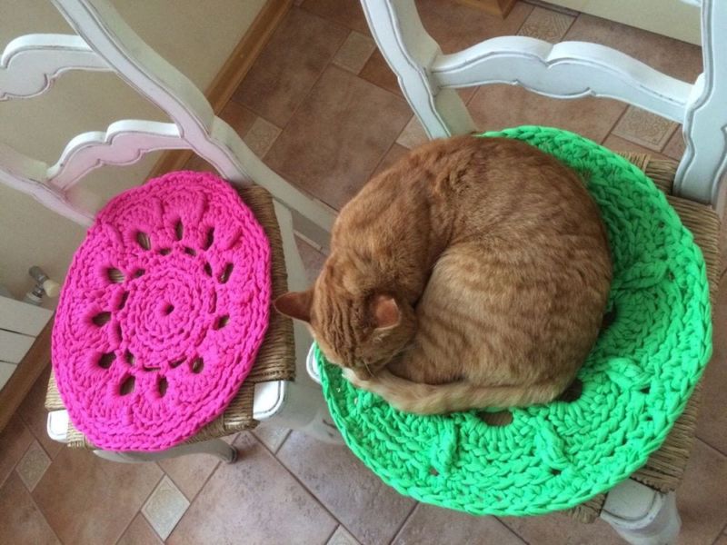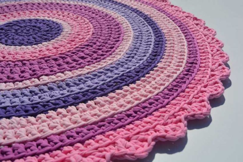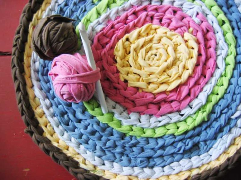 Плетените килими могат да бъдат кръгли или квадратни, едноцветни или цветни, плетени на една кука или на една игла. Изплетете кръгъл килим, като започнете от средата. Плетете в кръг до желания размер, пристегнете последните бримки.