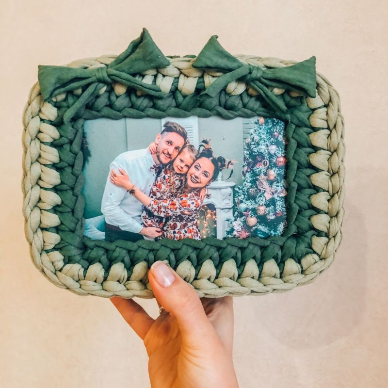 Рамките от плетена прежда изглеждат красиво в интериора на всекидневната. Те са доста лесни за приготвяне. Необходими са ви рамка, прежда и игла или плетиво на една кука.