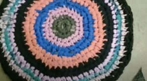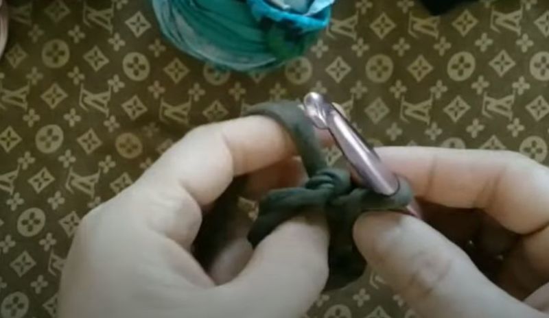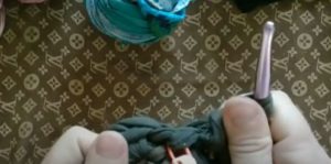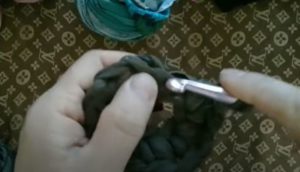 - Плетете в кръг, като по възможност редувате цветовете. Това ще направи творбата по-интересна. Фиксирайте първия и последния бод, които правите с прежда.