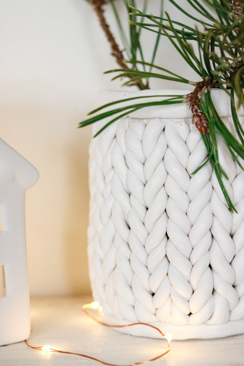 Много уютно, просто страхотно, вижте саксии с цветя от коси полимер или самовтвърдяваща се глина! Те са като ръчно завързани вълнени пуловери, които не дават на любимите ви цветя в студа. Наистина е лесно да се направи подобна ваза!