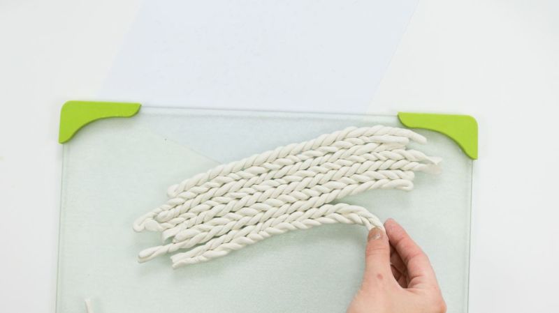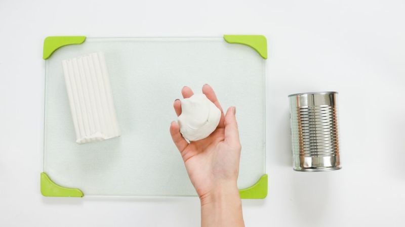 - Размачкайте самовтвърдяващата се глина с ръце, докато стане мека и податлива.