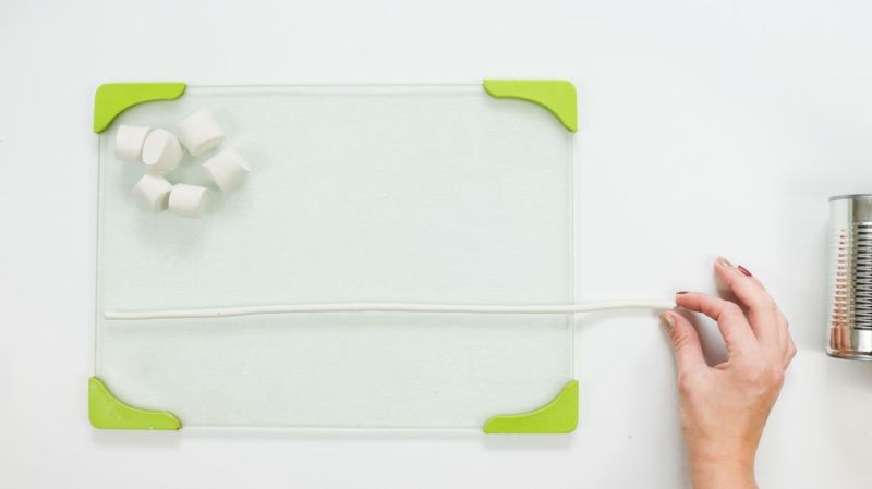 - Отделете едно парче с шпатула, за да оформите колбас, направете няколко такива дълги парчета.