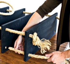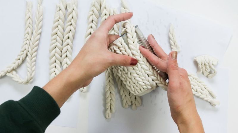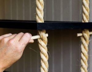 - Вкарайте края на въжето във всяка дупка и го закрепете със здрав и обемист възел. Можете да оставите кичур в края за красота.