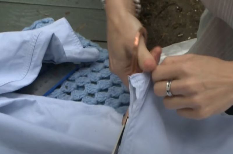 - С помощта на ножица отрежете частта с ръкавите и врата.