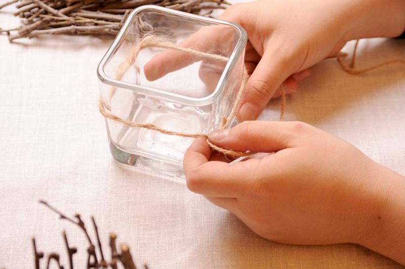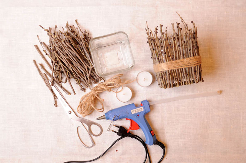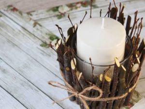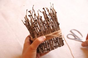 - С помощта на канцеларски нож нарежете клонки с височина, съответстваща на височината на свещника. Колкото по-голямо, толкова по-добре!