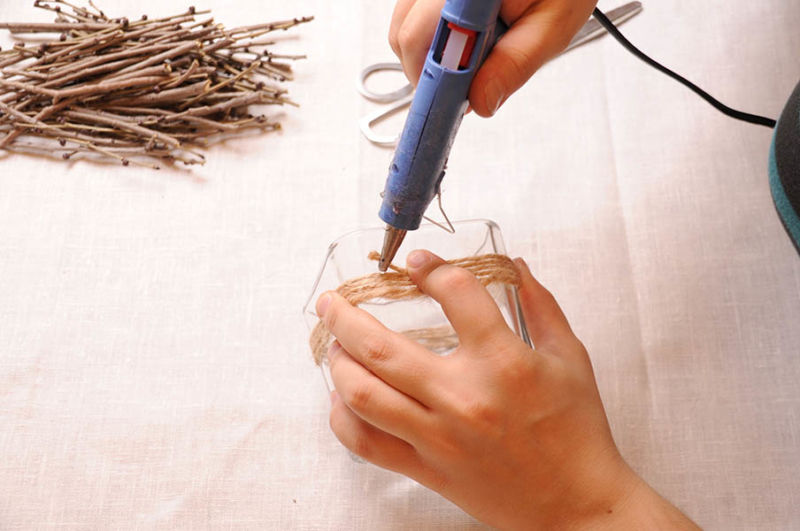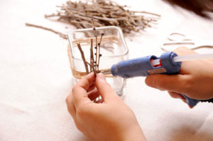 - С пистолет за горещо лепило залепете клоните върху основата, като избягвате пролуките.