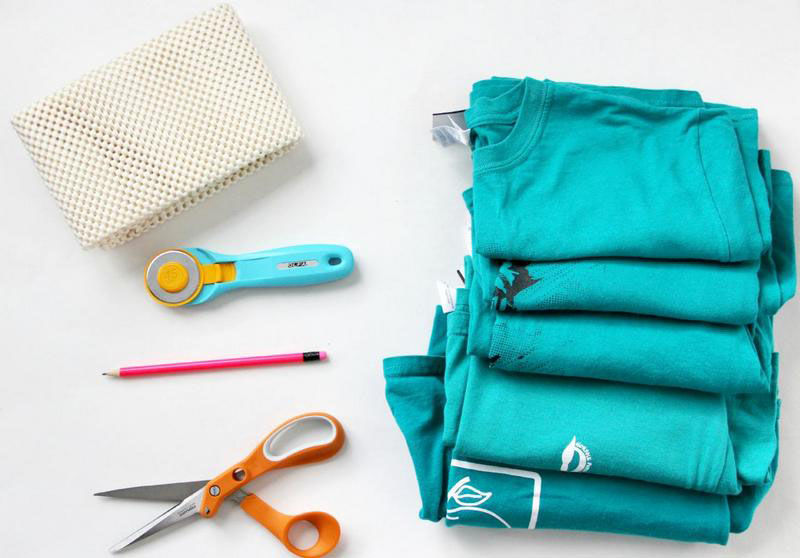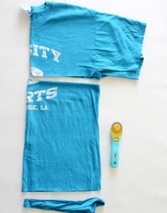 - Вземете стара тениска и я сгънете наполовина от ръкава до ръкава.