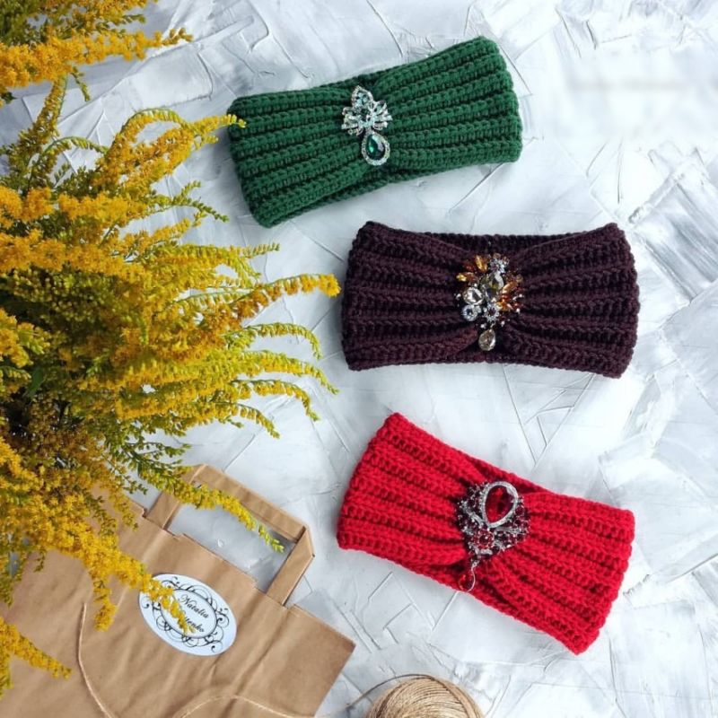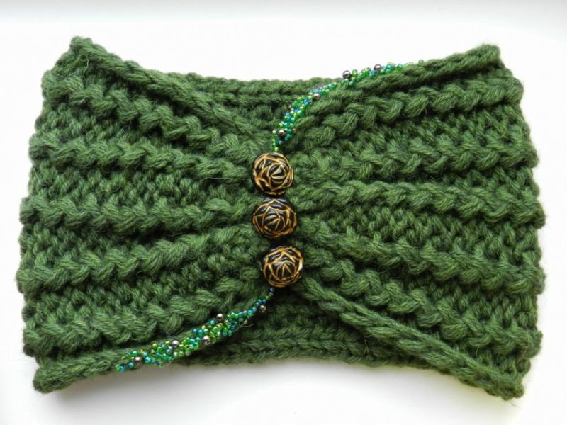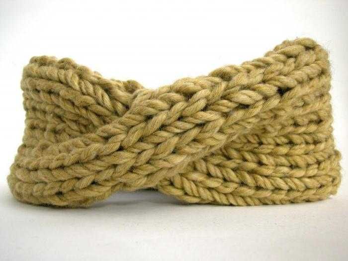 Най-лесният вариант е да се изплете широка лента с кръстосване. Чалмата покрива плътно ушите, но главата остава открита. Такъв продукт се харесва на момичетата с прекрасна коса. Тя може да се носи и от тези, които носят прическа на кок или конска опашка.