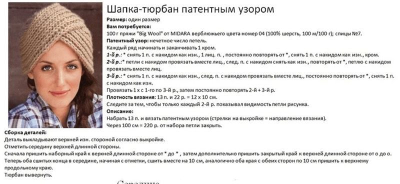 Тюрбан на една кука: избор на модел, прежда, модел, инструменти и инструкции за плетене с ножици и плетене на една кука